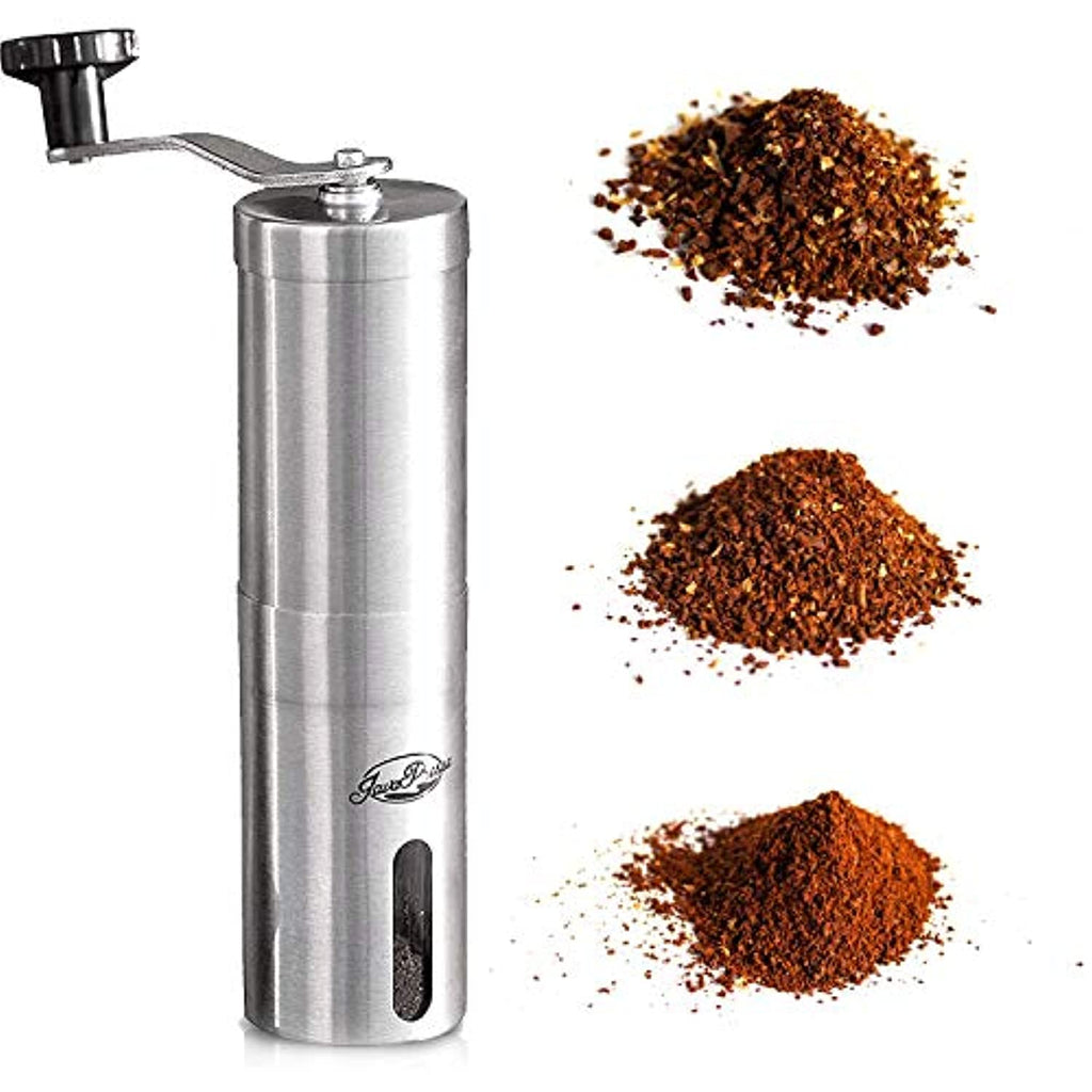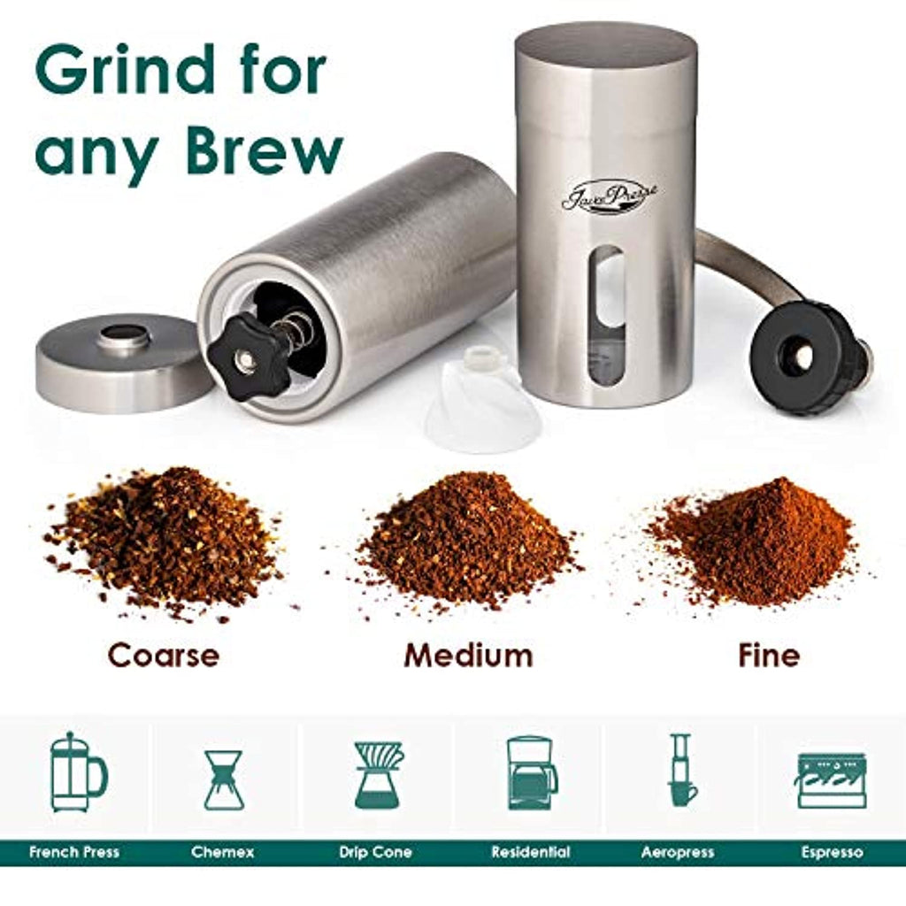 • [ Grind Fresh Coffee, Everyday! ] JavaPresse Manual Coffee Grinder only dispenses your desired fresh coffee bean experience - feel the coffee beans grind as you mill them the manual way! Smell the fresh aroma of your daily coffee as you brew them on your espresso machine. Ground, brew, and enjoy!