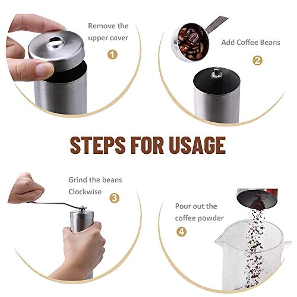 • ☕Manually operated: The coffee bean grinder is made of high quality stainless steel and ceramic burr, Don’t worry about annoying wires or constantly thinking if the batteries work. Our manual grinder grinds easily so you can have perfectly ground coffee beans in a few minutes.