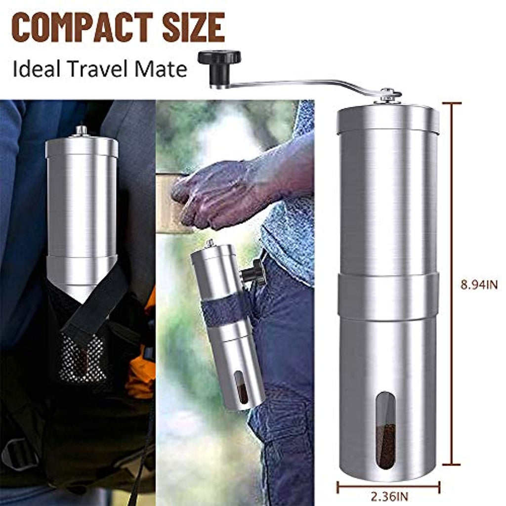 • ☕Keep fresh coffee flavors: This mini manual grinder is great for camping and traveling. Portable and compact size make it easy to carry . You can drink fresh coffee when you are camping, hiking, traveling or on a business trip.