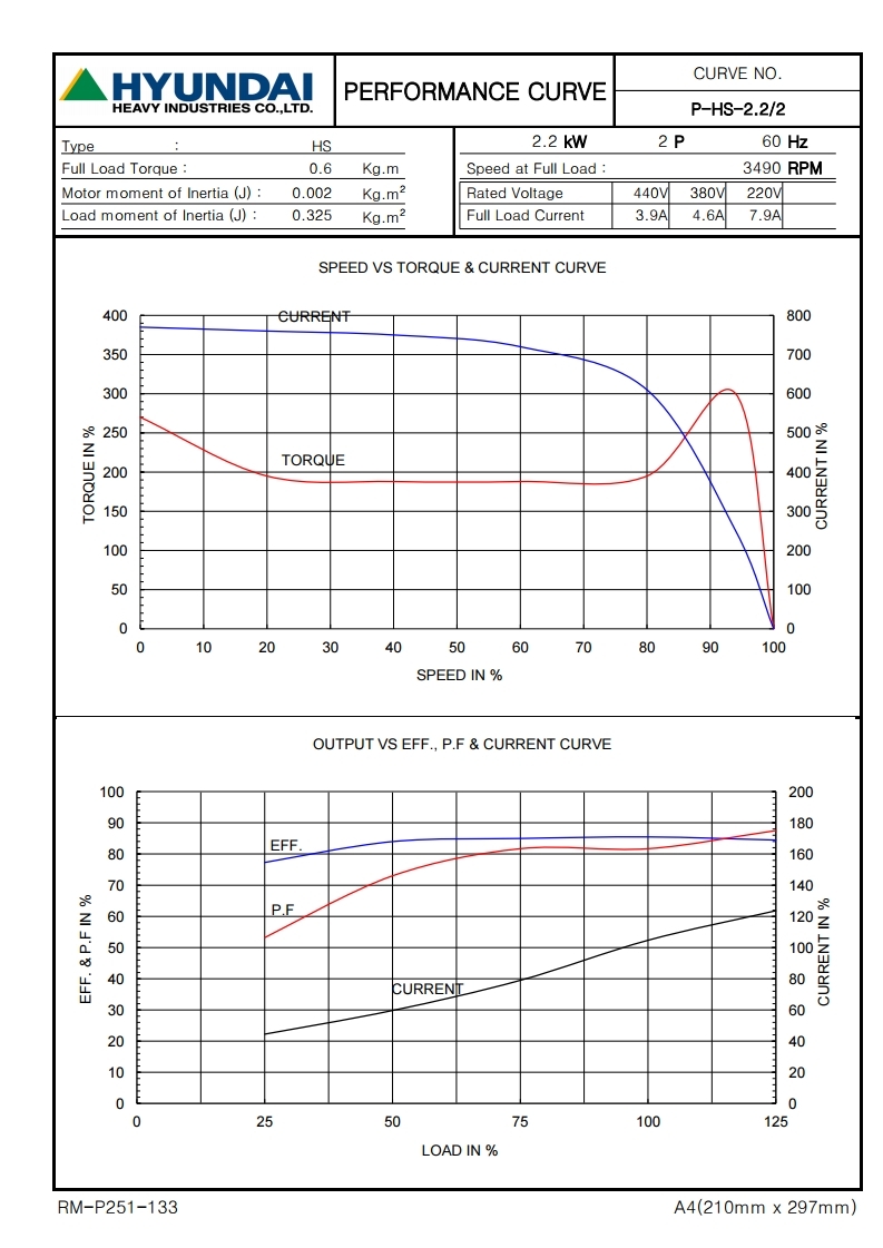 Hyundai Three-phase Induction Motor 3HP 2.2KW 2P 380V Horizental B3