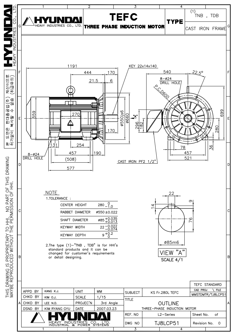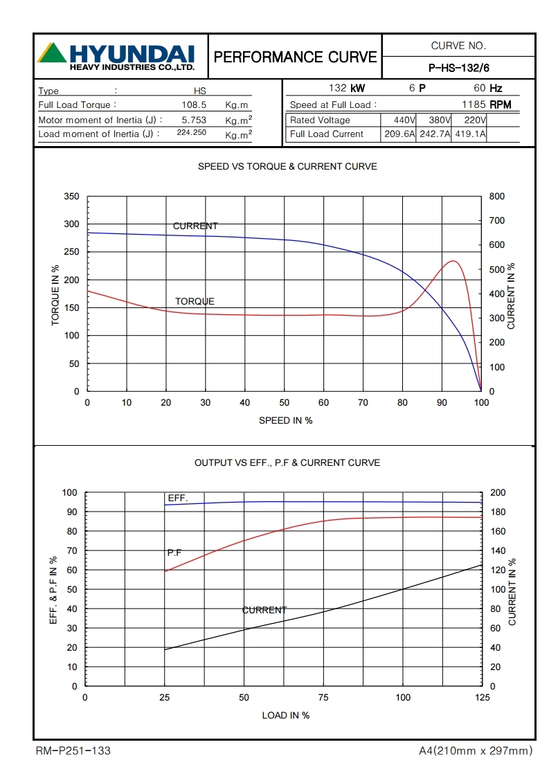 Hyundai Motor 175HP 132KW 6P 220V B3B5