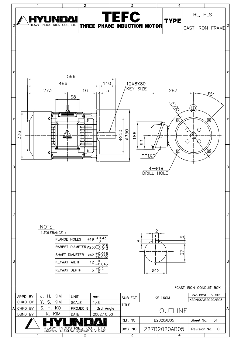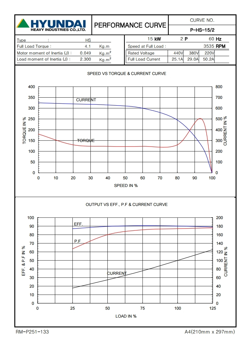 Hyundai Motor 20HP 15KW 2P 440V  B5 V1